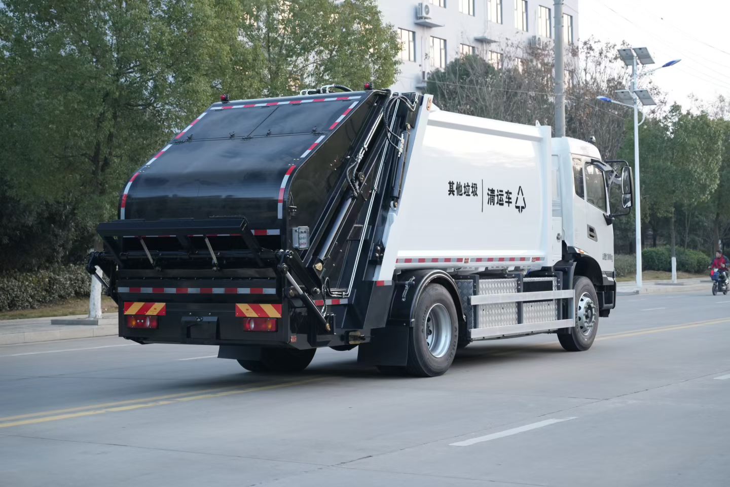 2、适用工况:主要适用于城镇居民区、社区、大型厂矿和机关院校的桶装、袋装和散装生活垃圾的收运。有多种翻桶(斗)机构,适用于不同用户的多种垃圾收集方式。