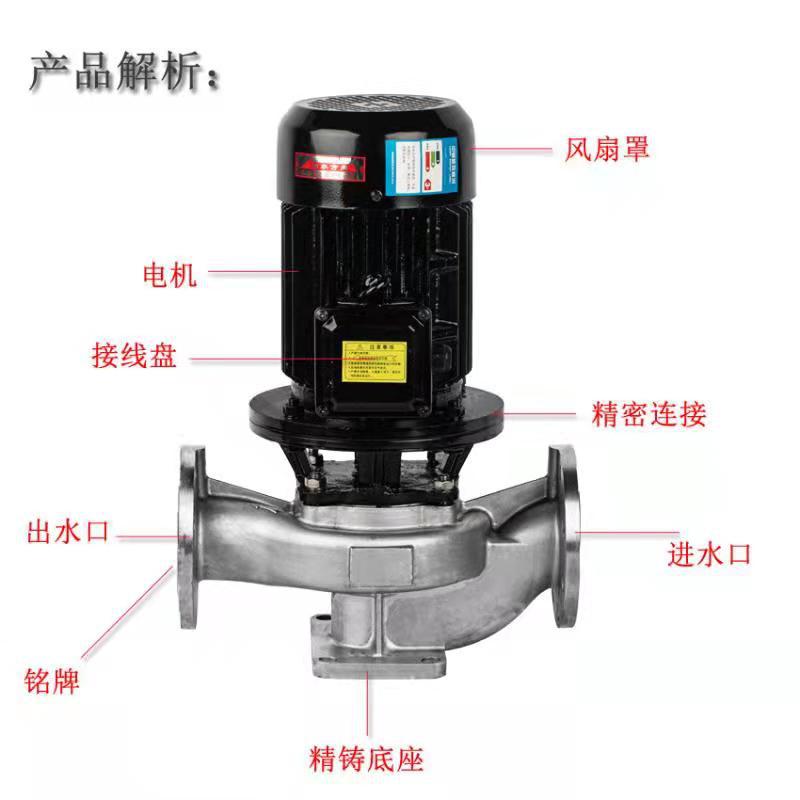 2、安装方便。进出口径相同并在同一线上,可像阀门一样直接安装在管路任何部位。电机加上防雨罩可置于户外使用。泵设有安装底脚,以便泵的安装稳定。