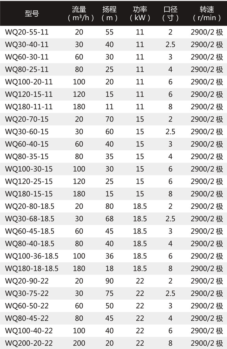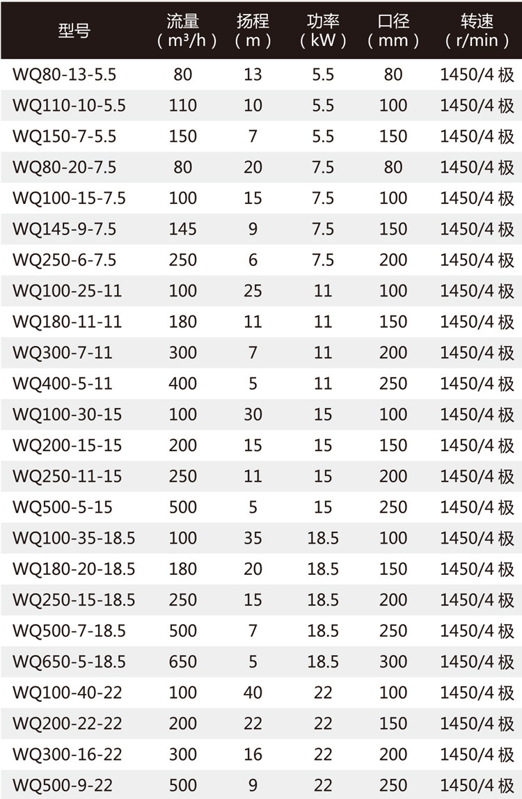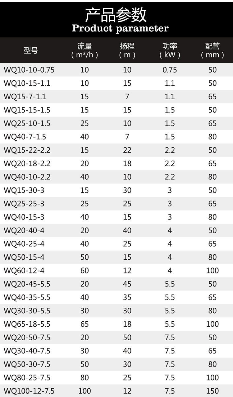 QW(WQ)型无堵塞潜水排污泵是在引进国外先进技术的基础上,结合国内水泵的使用特点而研制成功的新一代泵类产品,具有节能效果显著、防缠绕、无堵塞、自动安装和自动控制等特点。在排送固体颗粒和长纤维垃圾方面,具有效果。
