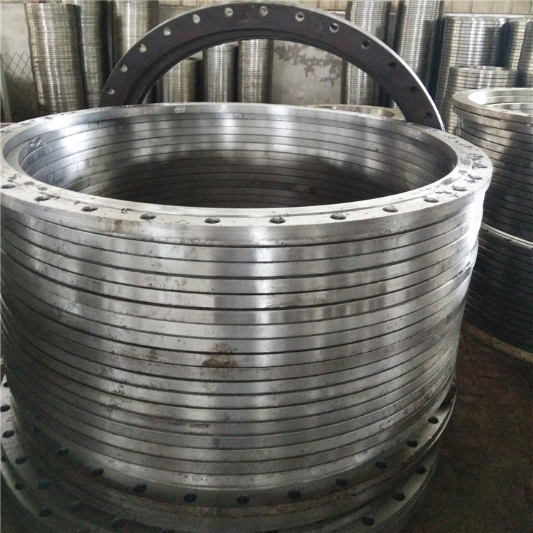 一般大家平时所提到的大法兰、大型法兰指的是超出了国家有关部门所规定的尺寸的比较大一些的法兰。一般指DN2000以上尺寸的法兰盘。这样的产品全是焊接的产品,没有丝扣的。国家法兰标准GB/T9119-2000之中的大的尺寸就是DN2000的。此类法兰盘的制作均要让施工方提供图纸来生产的。生产工艺有锻造及卷制两种。