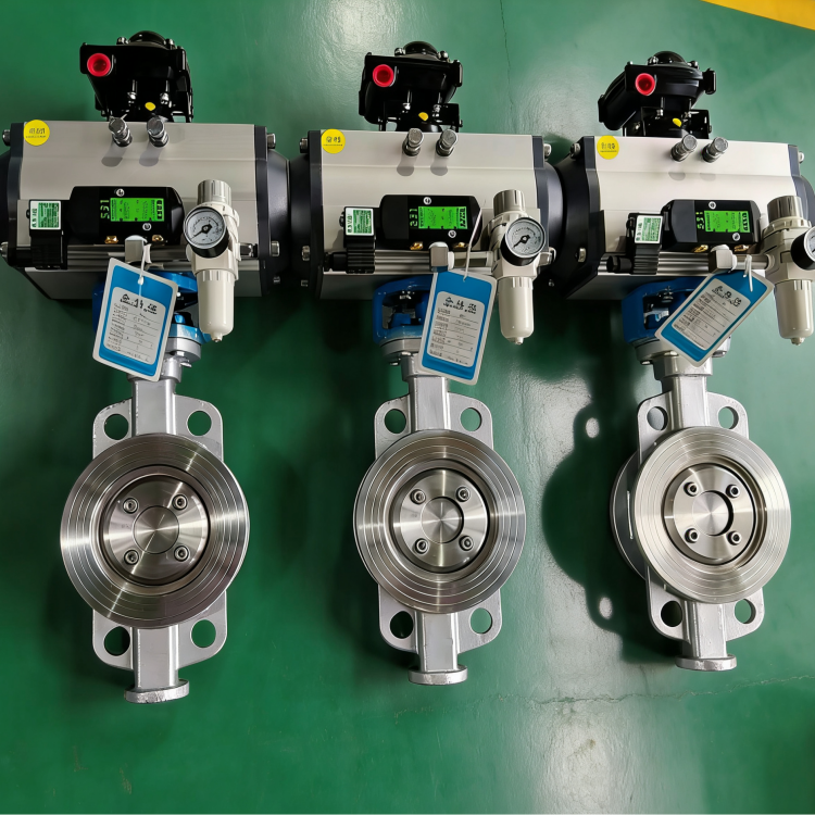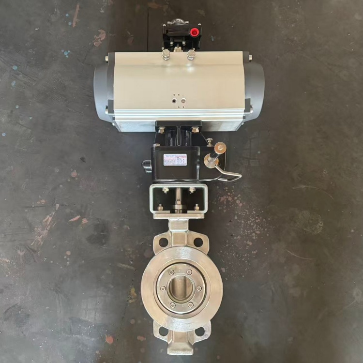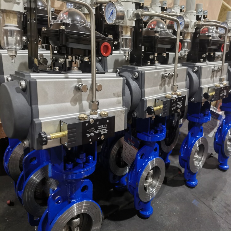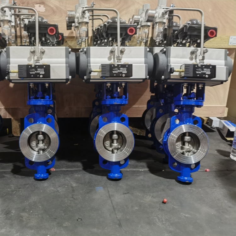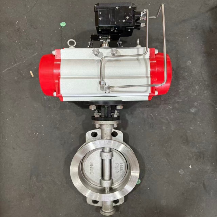 D673H气动对夹式硬密封蝶阀的密封原理利用偏心结构,做到了阀门启闭时蝶板与阀座间几乎无磨擦现象发生。阀杆的扭矩通过蝶板直接传递至密封面,从而杜绝了打开普通阀门时所常见的跳跃现象。这意味着偏心蝶阀几乎可以从0开度开始即进入可调控区域,直至90开度。其正常调控比是一般蝶阀的2倍以上,调控比高可高达100:1以上。这为偏心蝶阀作为调控阀使用创造了良好的条件。