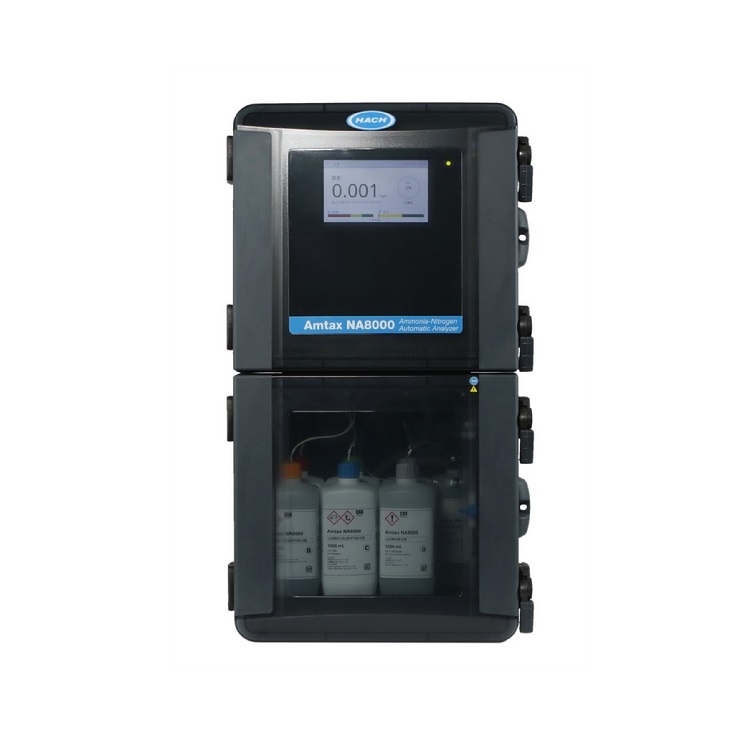 Amtax NA8000氨氮检测仪,满足中国市场对于氨氮检测仪的需求。Amtax NA8000在线氨氮检测仪采用水杨酸-靛酚蓝法,在测量准确性、稳定性及维护等方面做出了改进。该氨氮检测仪采用双波长及双光程比色皿设计,4档量程可自动切换,自动校准、清洗,同时支持数据存储和图形显示,满足水质氨氮检测仪的各种需求。Amtax NA8000氨氮检测仪采用水杨酸 - 靛酚蓝法测定氨氮浓度,由于催化剂的作用,NH4+在碱性介质中,与次根离子和水杨酸盐离子反应,生成靛酚化合物,并呈现出绿色。在氨氮检测仪测量范围内,其颜色改变程度和样品中的NH4+浓度成正比。Amtax NA8000氨氮在线监测仪通过测量颜色变化的程度计算出样品中NH4+的浓度,从而实现氨氮在线监测。