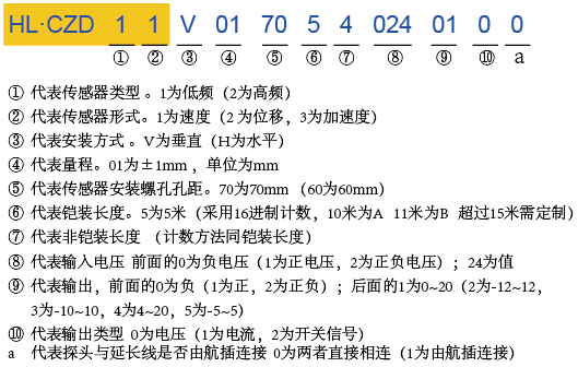 HL·CZD11型低频振动传感器的型号表述: