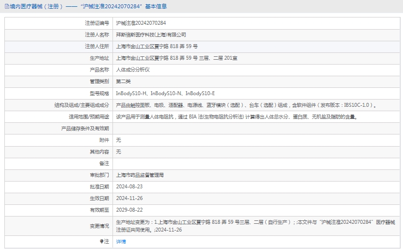 该产品用于测量人体电阻抗,通过 BIA 法(生物电阻抗分析法) 计算得出人体总水分、蛋白质、无机盐及脂肪的含量。