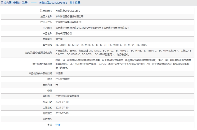 磁场:用于中枢神经和外周神经功能的改善,用于神经损伤性疾病、腰骶神经功能障碍的辅助治疗。 激光:用于腰肌劳损引起的疼痛的辅助治疗。 本产品在医疗机构中使用。 本产品不适用于直接作用于头部和脑部的治疗,也不用于精神领域疾病(含焦虑症和抑郁症)的治疗。