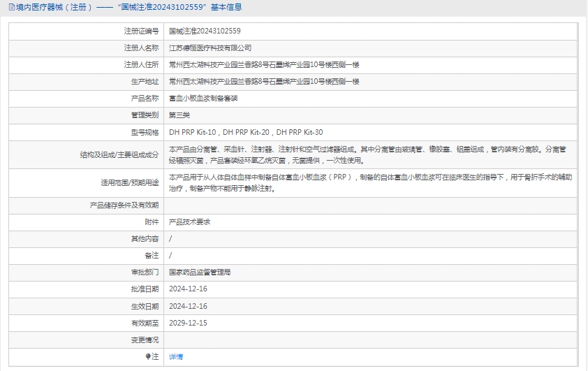 本产品用于从人体自体血样中制备自体富血小板血浆(PRP),制备的自体富血小板血浆可在临床医生的指导下,用于骨折手术的辅助治疗,制备产物不能用于静脉注射。