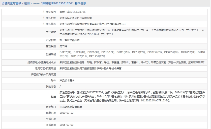 撕开型血管鞘组件包括:外鞘、扩张管、导丝、取直器、穿刺针、套管针、手术刀。灭菌,产品一次性使用。货架有效期3年