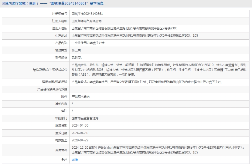 产品与软式内窥镜配套使用,用于消化道黏膜下层的注射,以及食道和胃的静脉曲张的治疗过程中进行内镜射。