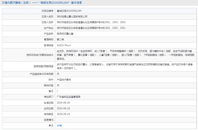 该产品用于对处方药进行雾化,以便患者吸入,设备可用于使用间断机械通气或其他正压呼吸辅助设备的患者。该产品仅供单个患者使用(主机除外)。