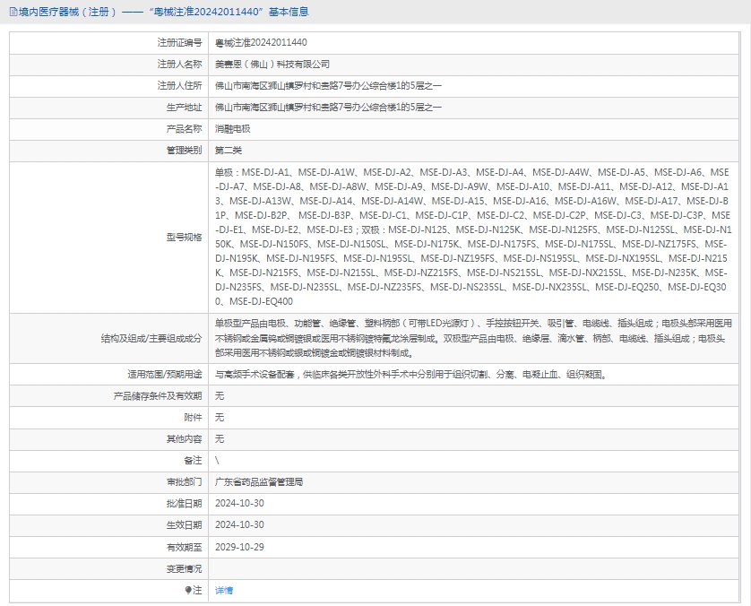 单极型产品由电极、功能管、绝缘管、塑料柄部(可带LED光源灯)、手控按钮开关、吸引管、电缆线、插头组成;电极头部采用医用不锈钢或金属钨或铜镀银或医用不锈钢镀特氟龙涂层制成。双极型产品由电极、绝缘层、滴水管、柄部、电缆线、插头组成;电极头部采用医用不锈钢或银或铜镀金或铜镀银材料制成。
