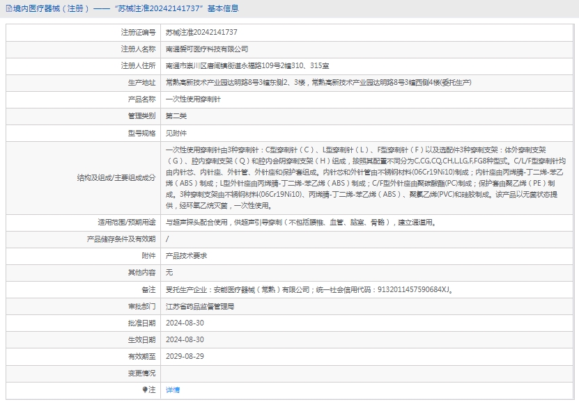 批准文号:苏械注准20242141737