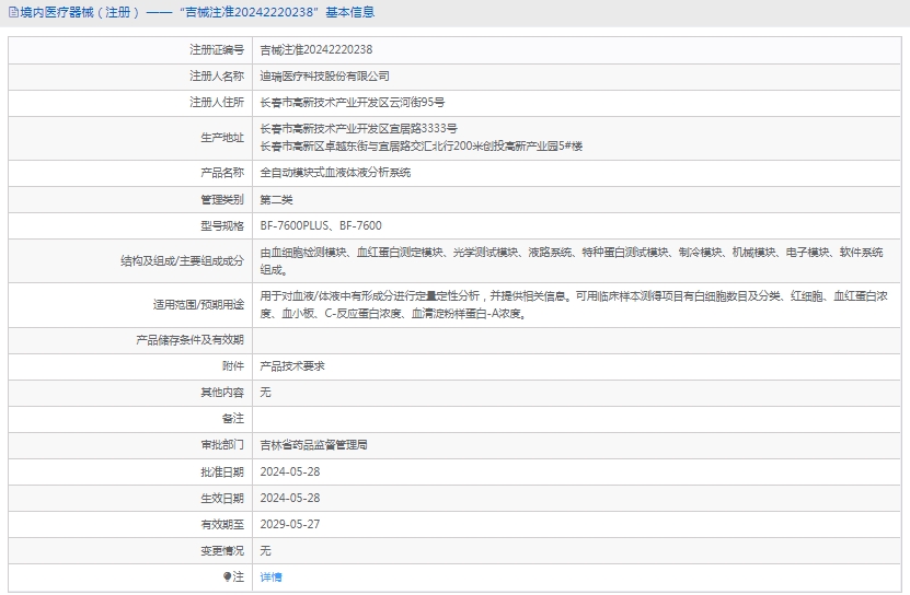 由血细胞检测模块、血红蛋白测定模块、光学测试模块、液路系统、特种蛋白测试模块、制冷模块、机械模块、电子模块、软件系统组成。