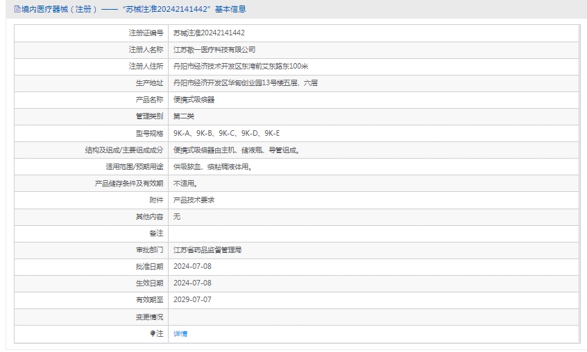 批准文号:苏械注准20242141442