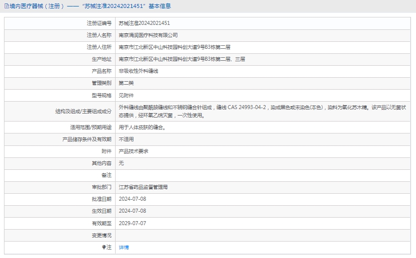外科缝线由聚酰胺缝线和不锈钢组成,缝线 CAS 24993-04-2,染成黑色或未染色(本色),染料为氧化苏。该产品以无菌状态提供,经灭菌,一次性使用。