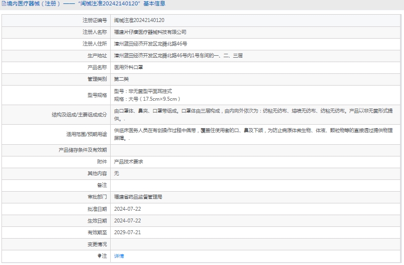 由口罩体、鼻夹、口罩带组成。口罩体由三层构成,由内向外依次为:纺粘无纺布、熔喷无纺布、纺粘无纺布。产品以非无菌形式提供。.