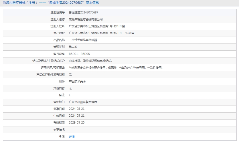 与麻醉深度监护设备配合使用,供采集、传输脑电生物信号用。一次性使用。
