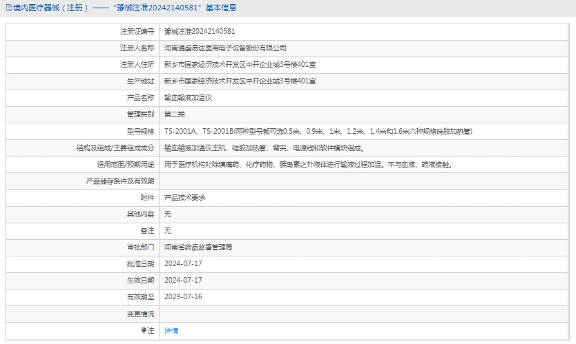 批准文号:豫械注准20242140581
