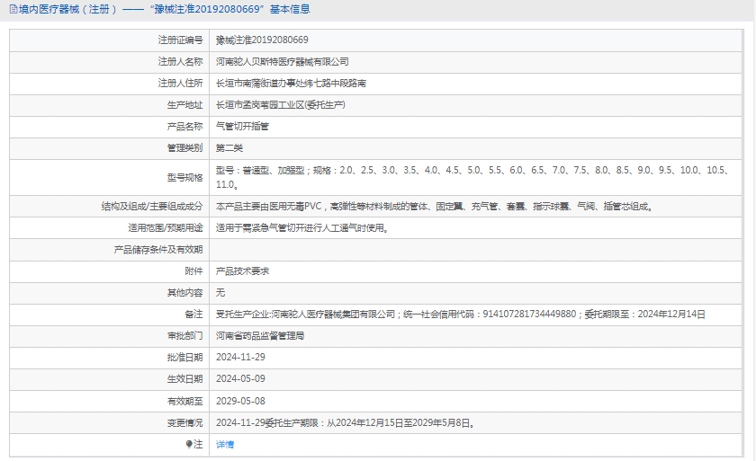 批准文号:豫械注准20192080669