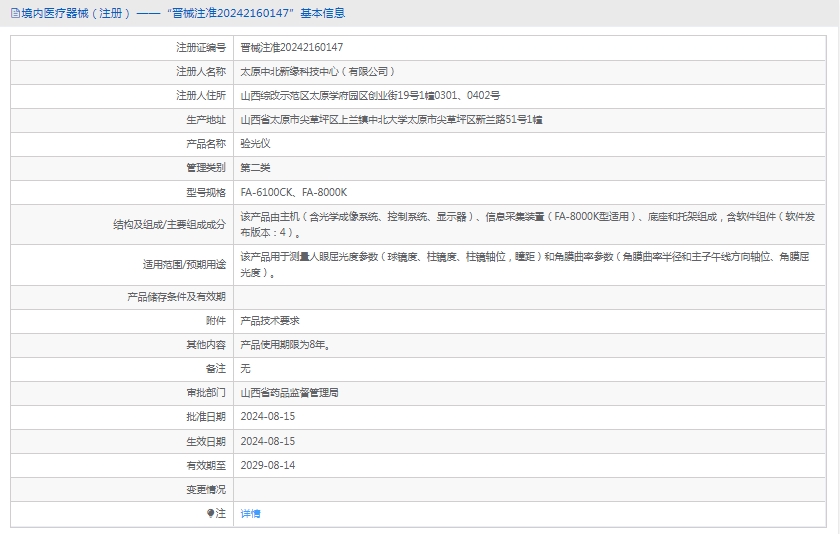 该产品用于测量人眼屈光度参数(球镜度、柱镜度、柱镜轴位,瞳距)和角膜曲率参数(角膜曲率半径和主子午线方向轴位、角膜屈光度)。