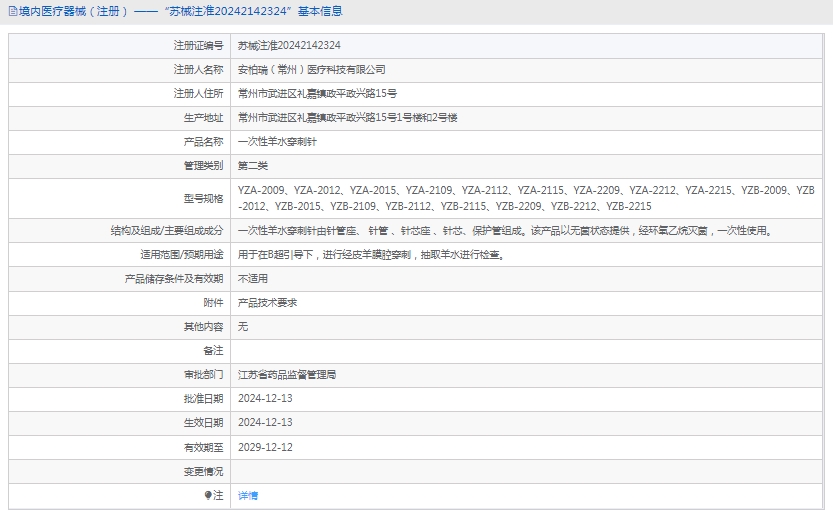 一次性羊水穿刺针由针管座、 针管 、针芯座 、针芯、保护管组成。该产品以无菌状态提供,经灭菌,一次性使用。