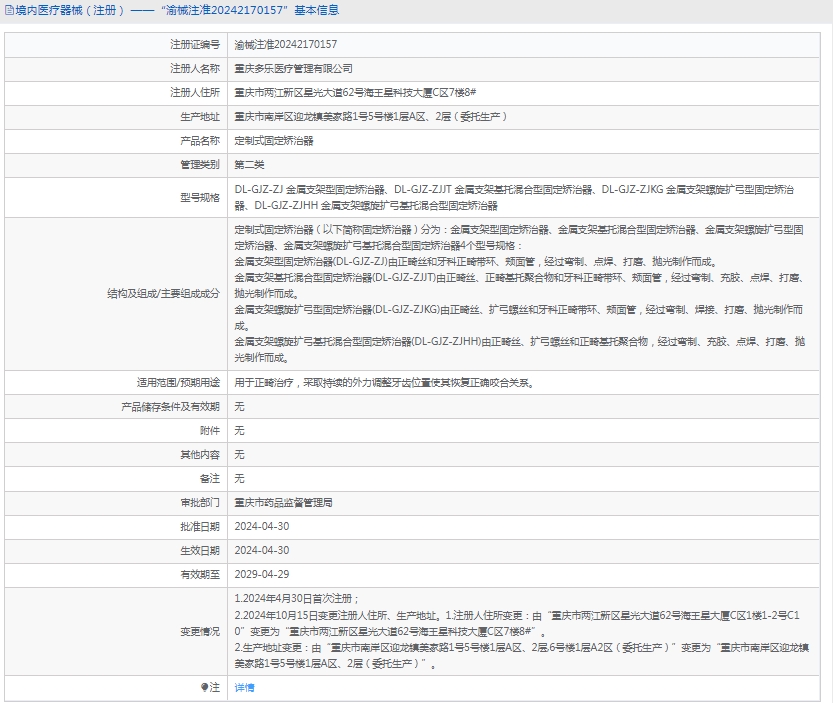 批准文号:渝械注准20242170157