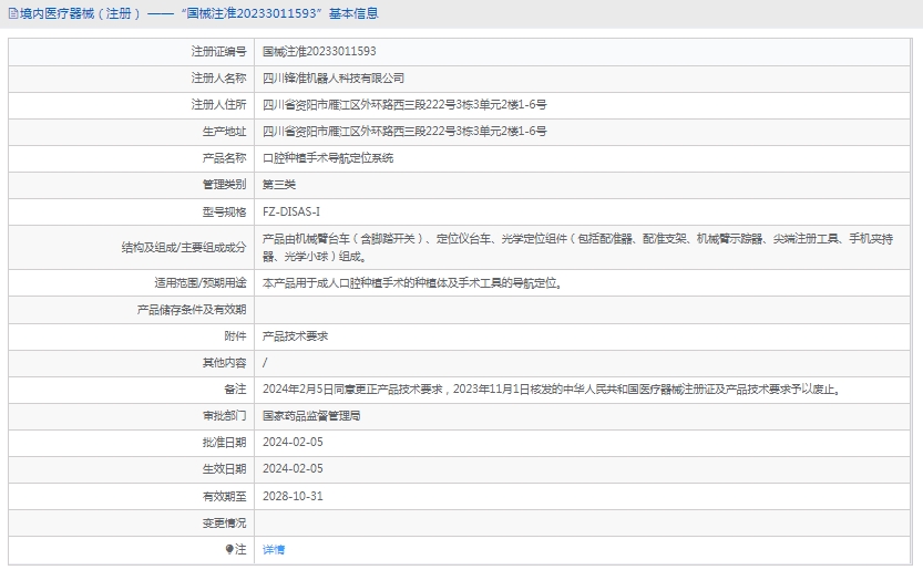 本产品用于成人口腔种植手术的种植体及手术工具的导航定位。