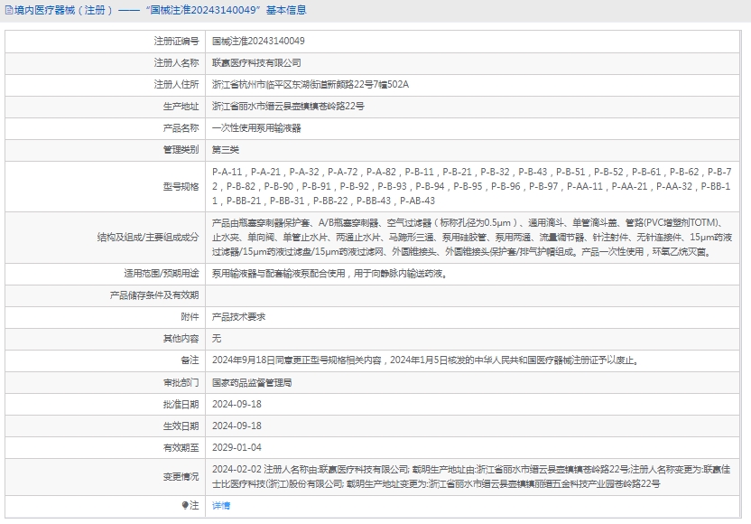 泵用输液器与配套输液泵配合使用,用于向静脉内输送药液。