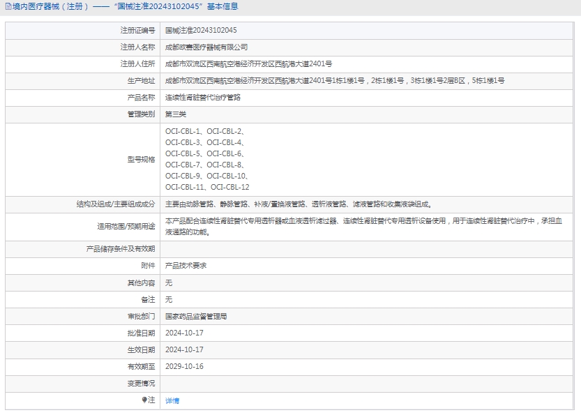OCI-CBL-6连续性肾脏替代治疗管路