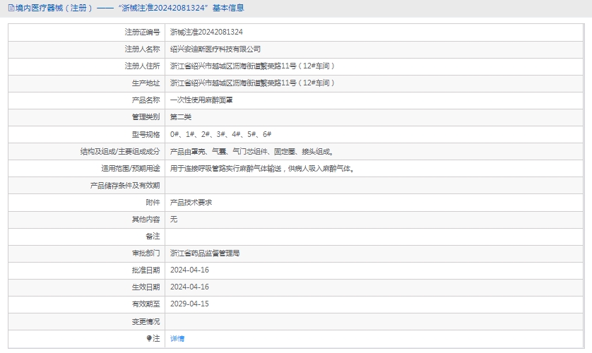 用于连接呼吸管路实行麻醉气体输送,供病人吸入麻醉气体。