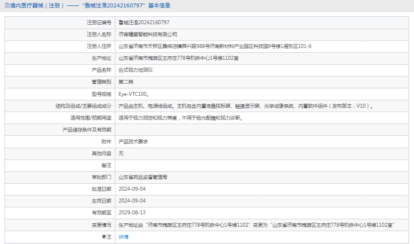 产品由主机、电源线组成。主机包含内置液晶视标屏、触摸显示屏、光学成像系统、内置软件组件(发布版本:V10)。