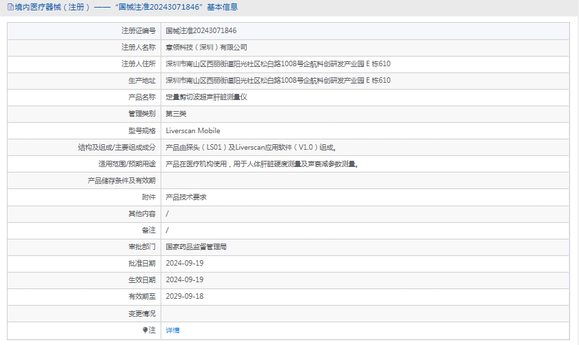 产品在医疗机构使用,用于人体肝脏硬度测量及声衰减参数测量。