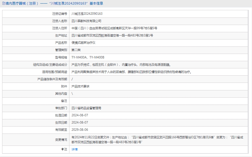 产品利用聚焦超声技术用于人体的颈肩部、腰腹部和四肢部位慢性软组织损伤性疼痛的治疗。