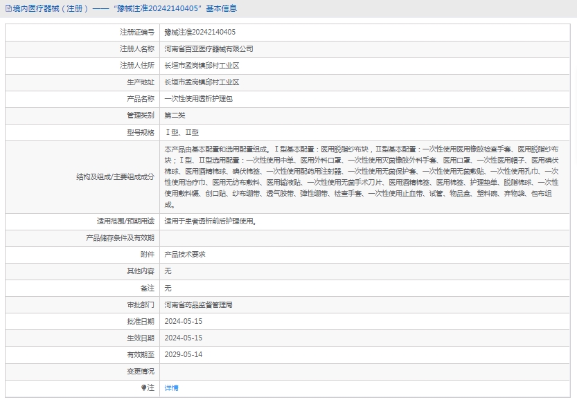 Ⅰ型、Ⅱ型一次性使用透析护理包百亚