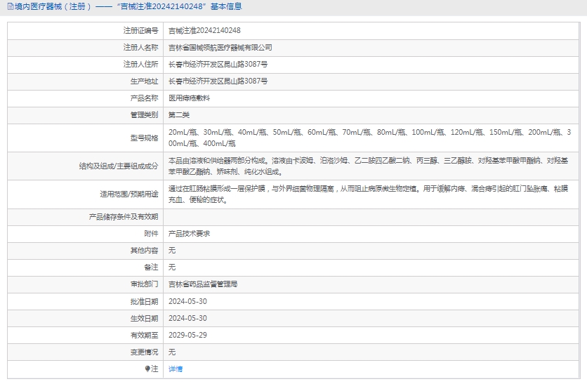 通过在肛肠粘膜形成一层保护膜,与外界细菌物理隔离,从而阻止病原微生物定植。用于缓解内痔、混合痔引起的肛门坠胀痛、粘膜充血、的症状。