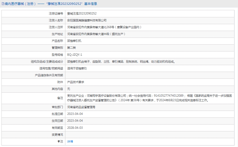 批准文号:豫械注准20232090252