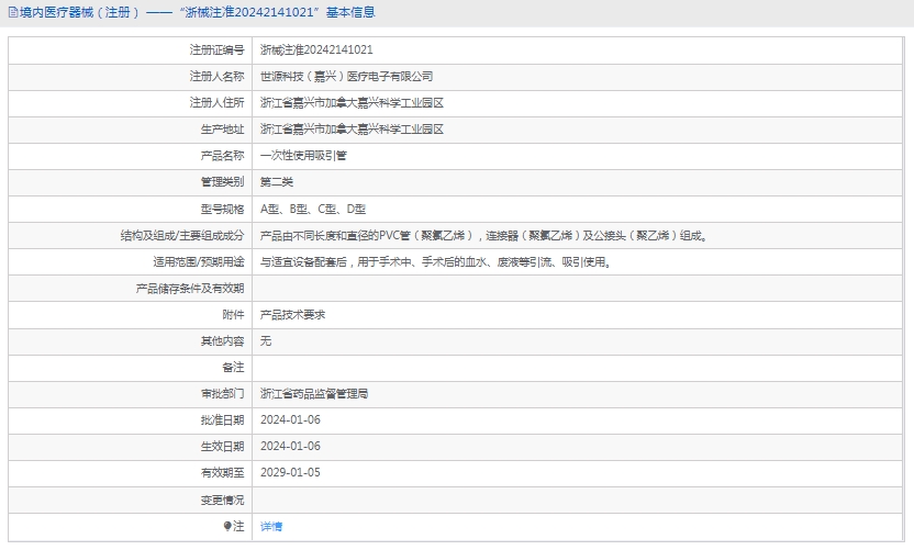 批准文号:浙械注准20242141021