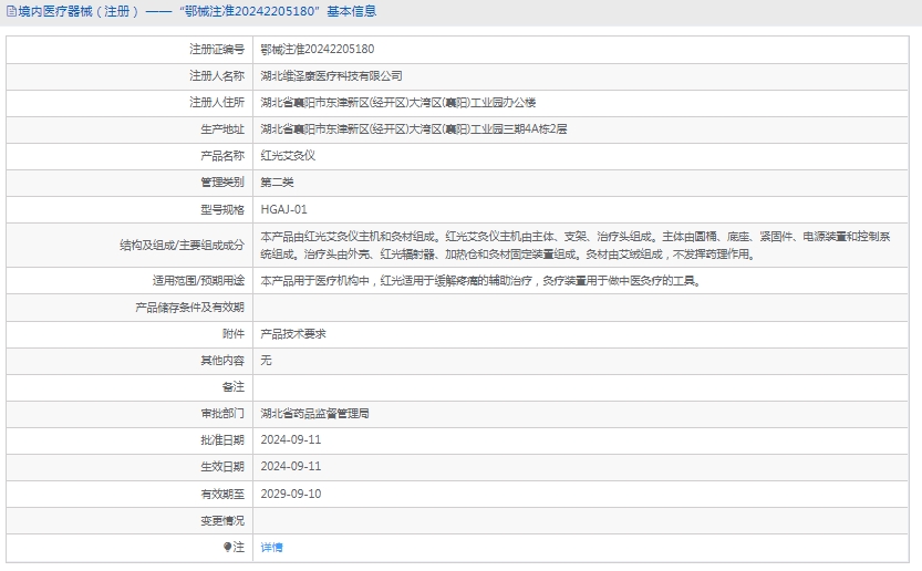 本产品用于医疗机构中,红光适用于缓解疼痛的辅助治疗,灸疗装置用于做中医灸疗的工具。