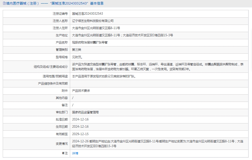 冠脉药物涂层球囊扩张导管垠艺