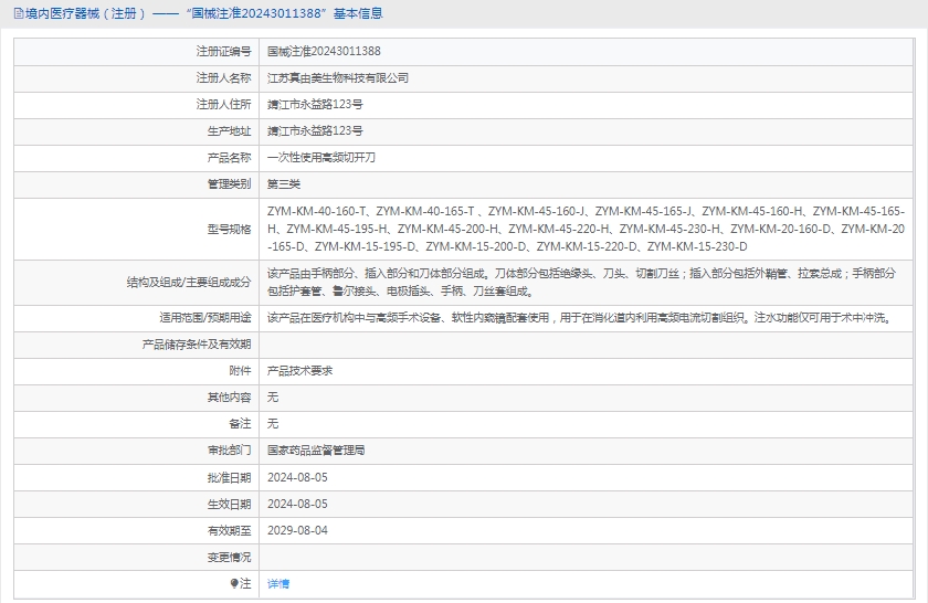 批准文号:国械注准20243011388