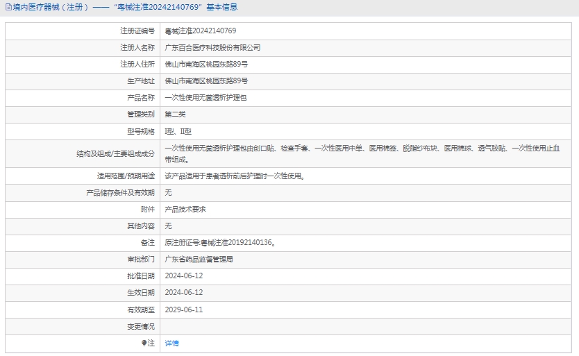 一次性使用无菌透析护理包由创口贴、检查手套、一次性医用中单、医用棉签、脱脂纱布块、医用棉球、透气胶贴、一次性使用止血带组成。