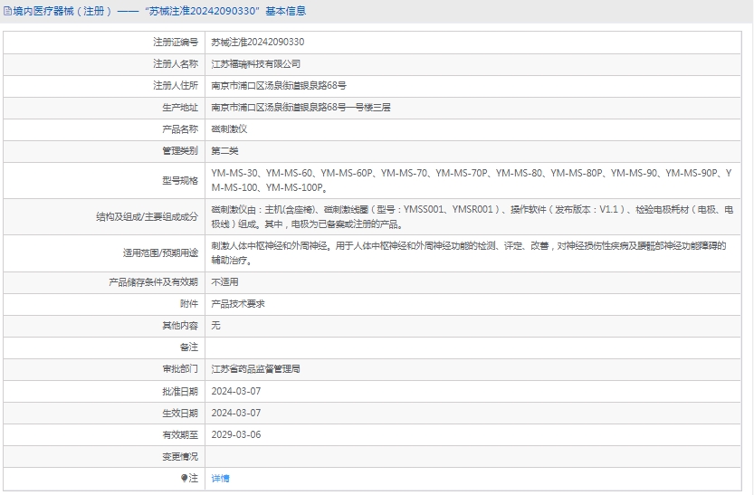 磁刺激仪由:主机(含座椅)、磁刺激线圈(型号:YMSS001、YMSR001)、操作软件(发布版本:V1.1)、检验电极耗材(电极、电极线)组成。其中,电极为已备案或注册的产品。