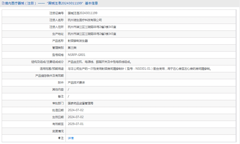 与本公司生产的一次性使用射频房间隔穿刺针(型号:NS0301-01)配合使用,用于右心房至左心房的房间隔穿刺。