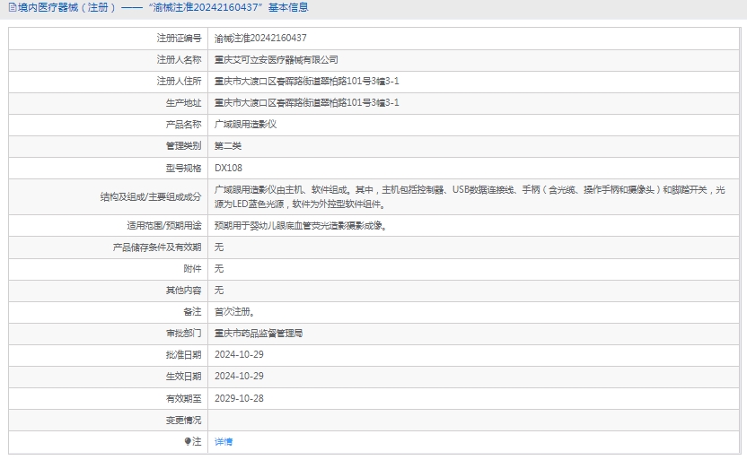 批准文号:渝械注准20242160437