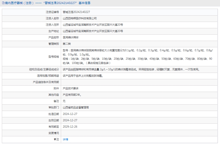 批准文号:晋械注准20242140227