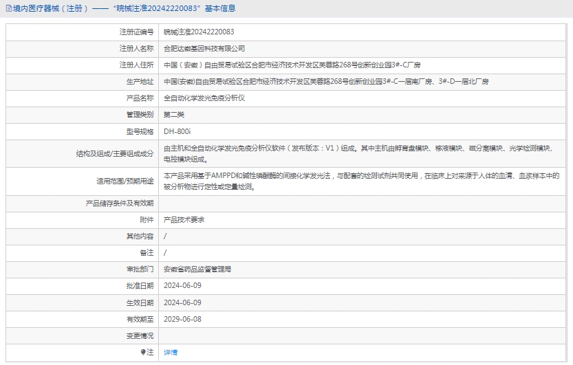 批准文号:皖械注准20242220083