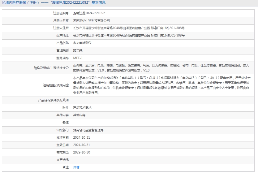 本产品与本公司生产的血糖试纸条(电化学法)(型号:GLU-1)和尿酸试纸条(电化学法)(型号:UA-1)配套使用,用于体外定量检测人体新鲜末梢全血中、尿酸的浓度;以示波法测量成人舒张压、收缩压、脉搏,其数值供诊断参考;用于采集和记录被测对象的心电波形和心率值,供临床诊断参考;通过测量额头的热辐射来显示被测对象的额温;本产品可由人士使用,也可由非用户自测使用。