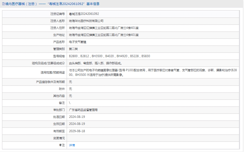 与本公司生产的电子内窥镜图像处理器 (型号 P100)配合使用,用于医疗单位对患者气管、支气管部位的观察、诊断、摄影和治疗(B2800、BH3500 不适用于治疗)提供所需影像。