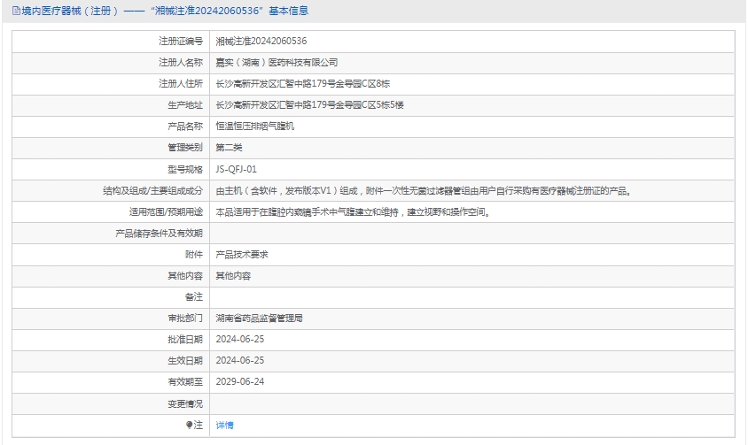 本品适用于在腹腔内窥镜手术中气腹建立和维持,建立视野和操作空间。