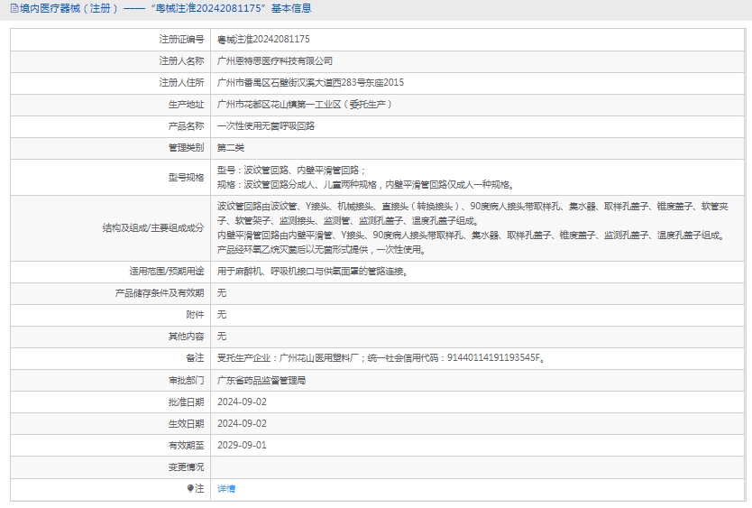 规格:波纹管回路分成人、儿童两种规格,内壁平滑管回路仅成人一种规格。