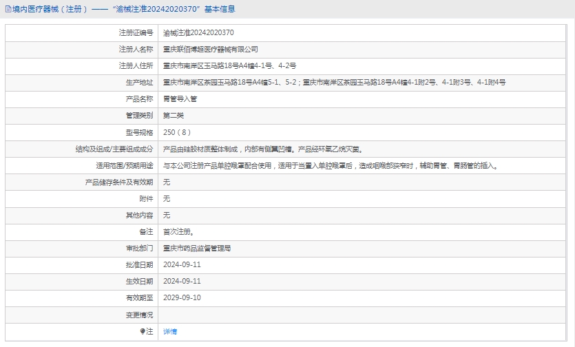 批准文号:渝械注准20242020370